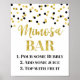 Bar de sinal de poster Mimosa para chá de panela ou chá de fraldas em branco com um padrão de confete preto e dourado com letra de estilo manuscrita. Perfeito para casamentos ou chás de panela.