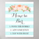 Poster de bar de sinal de Mimosa para chá de fraldas, chá de panela ou casamento em padrão de listras claras, azuis e brancas, de cor rosa-d-água cor-de-pêssego com letra de estilo manuscrita. Perfeito para um chá de fraldas, casamento ou chá de panela.