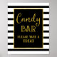 Poster de sinal de bar de doce para chá de fraldas, chá de panela ou casamento em ouro, padrão de listras preto e branco e letra de vintage estilo manuscrito. Perfeito para um chá de fraldas, casamento ou chá de panela.