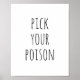 Defina o humor para a sua irmandade com este sinal de Dia das Bruxas preto e branco "Escolha seu veneno", com uma fonte divertida de estilo manuscrito para um encanto extra. Perfeito para decorar seu bar de bebidas de Halloween, estação de cocktail ou instalação de casa assombrada. A paleta negra e branca minimalista se mistura facilmente com temas góticos, modernos ou antigos. Ideal para festas adultas, encontros com bruxas ou eventos quentes assustadores. Use-o como um poster de declaração na entrada, sobre seu bar ou como um suporte imprimível para sua cabine de fotos de Halloween. Na moda, diversão, e a quantidade certa de inquietação... esta placa convida seus hóspedes a beberem... se eles ousarem. Disponível em vários tamanhos para decoração fácil e também como download digital para impressão rápida em casa.