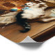 Baralhos | Cartões de Jogada de Carl Reichert é uma pintura caprichosa e deliciosa que inclui três gatos brincalhões reunidos em torno de uma mesa, aparentemente engajados em um jogo intenso de cartas. As faces expressivas e as poses dinâmicas dos gatos acrescentam humor e charme, enquanto o cenário finamente detalhado melhora a atmosfera aconchegante e iluminada da cena. A habilidade de Reichert em retratar animais com personalidade e caráter faz desta pintura um exemplo amado de sua arte e senso de humor. Use as ferramentas de design para adicionar texto personalizado ou personalizar a imagem.