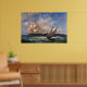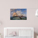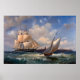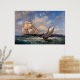 Um belo barco à vela com todas as velas e a bandeira sueca. O poster é uma pintura de arte digitalizada do século XIX pelo pintor sueco Arnold Plagemann.