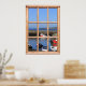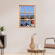 Esta visão de barcos de pesca brilhantes a partir de uma janela de madeira é a companheira dos outros Barcos na poster da janela do porto. Mostra uma cena num porto de pesca bonito onde os barcos pintados aguardam a sua próxima navegação. Comprar os posters como um par e mostra este à esquerda (enquanto você olha para a parede) do outro para criar a aparência de uma visão real de 2 janelas na sua parede!