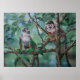 Macacos esquilos apreciando a vista perto do topo da floresta tropical. De uma pintura original de Laura Regan