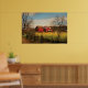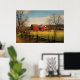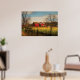 Uma fazenda à luz do sol de pôr. Vindo para casa de um duro dia nos campos, é bom voltar para um lugar quente como este. Campos amarelos, celeiro vermelho...