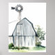 Barn de Aquarela I de Jennifer Paxton Parker. Casca branca-cinza com verde e moinho de vento pequeno.