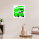 Ilustração de um ônibus verde brilhante de dois andares. Personalize e escolha facilmente a sua própria cor de fundo ou adicione texto. Imagem disponível em vários presentes e produtos.