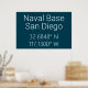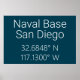 Coordenadas do mapa Latitude e longitude para a Base Naval San Diego, na Califórnia - também conhecida como 32nd Street Naval Station, home do estilo Pacific Fleet Roboto, em fundo azul Marinho.