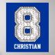 Um design bonitinho para o jogador de beisebol, softball ou tee ball, apresentando o número oito com dentro de baseball o número. Personalize o texto para criar um presente único e divertido para o jogador de beisebol que veste o número 8 ou o futuro jogador de beisebol que está celebrando seu oitavo aniversário. A cor de fundo pode ser alterada para atender às suas próprias necessidades - se você precisar de assistência com as cores, entre em contato conosco através da loja CelebrationBazaar. Outros números e esportes disponíveis na loja CelebrationBazaar. Se o número ou o esporte que gostaria não estiver disponível, por favor contacte-nos através da loja CelebrationBazaar e ficaremos felizes em ajudá-lo adicionando o design.