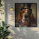 Poster Basset Hound vestindo chapéu e gravata borboleta v