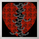 Um coração com padrão vermelho se abre e libera um redemoinho de morcegos. Excelente para vestir no Halloween, fora da festa ou em qualquer lugar onde seu estilo exclusivo e especial seja admirado e apreciado.