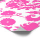 Nome personalizável Bat Mitzvah party banner poster em divertida e brilhante fuchsia rosa quente, cinzas e cor damasco floral clássica branca.