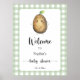 "Um pouco de batata está a caminho". Celebrar com esta festa de chá de fraldas de batatas de desenho animado! Batata bonitinha de aquarela com cara de bebê. Gaiola verde.