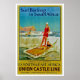 Vintage "Bathing Surf na África do Sul" publicando poster de promoção dos serviços semanais de passageiros e navios a vapor de correio da Union Castle Line para a África do Sul e Oriental.