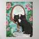 Poster Bathroom Black Cat in Mirror Print, Funny Japanese