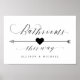 Simples Caligrafia Elegante Manuscrito Banheiros de Recepção de casamento Assim, Seta apontando Sinal Direcional Esquerdo, em belas letras de rico fluentes e seus nomes personalizados. Um na moda, mas simples, design formal em preto e branco ou qualquer cor de fundo que você escolher. Basta clicar no link personalizar mais, mostrado na área de personalização de texto à direita, e escolher seu fundo de cor personalizado. Este poster de placa faz com que seja rápido e fácil criar acréscimos incríveis à decoração do casamento. Os sinais podem ser ampliados, há muitos tamanhos a serem escolhidos, assim como opções de enquadramento e correspondência personalizados. Casando dessa forma, cartazes personalizados. ~ Verifique meu compro ou coleção abaixo para ver mais sinais complementares do seu casamento