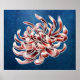Um crisântemo de aranha rosa solteiro contra um fundo azul rico.renderizado no estilo batik.