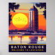 Baton Rouge poster. Sunset sobre a cidade. vista do rio Mississippi. Poster de viagens em cores vibrantes.