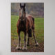 Uma jovem baía Shire Draft Horse apresenta para a câmera em um ambiente de fazenda nebulosa em Ashley Heath perto de Ringwood, Hampshire, Inglaterra. Fotografia por Skye Ryan-Evans ©.