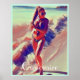Modelo de garota de praia Bikini, parada na beira da água, vestindo um rabo de cavalo para personalizar com sua própria saudação, nome, mensagem, etc