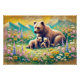 Pôster Bear Family em Mountain Meadow Pastel Chalk Drawin