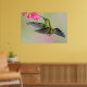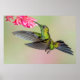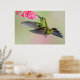 Print featuring a beautiful green-crowned brilliant hummingbird flying to a pink flower in Costa Rica, with his wings and tail feathers spread out and his iridescent green feathers sparkling. Beautiful decor for bird, garden and hummingbird lovers. Photo taken at Bosque de Paz Reserva Biologica, Valle del Rio Toro, Alajuela, Costa Rica.