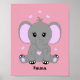 Poster Bebê elefante fofo de rosa para meninas