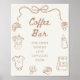 Comemore os pais a serem com este lindo sinal de bar de café para download, com chá de fraldas neutro em gênero, com ilustrações temáticas de café desenhado à mão e fontes brancas e escritas à mão.
