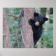 Poster com a foto de um filhote de ursinho preto e bonito e brincalhão em uma árvore