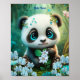 Poster Bebê Panda Azul Jardim das Flores Berçário Caprich