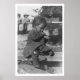 Uma fotografia clássica do documentário do Alasca de Frank G. Carpenter. Esta poster comemorativa apresenta uma Vista de um bebê esquimó brincando num conselho em Nome, no Alasca; tirada em 1906.
