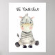 Poster Bebê Zebra Watercolor Seja Você Mesmo