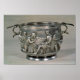 Copo de bebendo de prata romano de Roman, que representa o rei Priam de Troia apelando a Achilles para o regresso do seu filho Hector, encontrado no túmulo de um chefe em Hoby, Dinamarca, século 1rua a.C. (dobra prateada), localizado no Museu Nacional, Copenhaga, Dinamarca. A taça de bebendo de marrã prateada romana que retrata o rei Priam de Troia apelando a Achilles para o regresso do seu filho Hector, encontrada no túmulo de um chefe em Hoby, na Dinamarca, o século 1rua a.C. (marrã prateada) foi criado por volta do século 1rua.