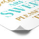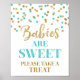 Bebês de bar doce são doces, por favor, pegue um poster de sinal de vestimenta para chá de fraldas em um padrão azul claro e de confete dourado com letras de estilo manuscritas.