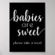 Chá, festa ou cartaz de mesa moderno "Bebês são doces: por favor, dê uma olhada", apresentando um roteiro divertido e casual, escrito à mão. O clássico design inclui uma moderna camada de tipografia de citações feitas à mão. A bela fonte com uma cor de fundo personalizável facilita o ajustado de qualquer tema. Para outras cores ou produtos correspondentes, visite a loja justFharryn Zazzle ou entre em contato com o designer, c/o fharryn@yahoo.com Todos os direitos reservados. #zazzlemade