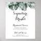 Este pôster de bebidas com assinatura de flores brancas e verde tropical é perfeito para um casamento rústico. O design apresenta buquês de folhas de palmeira verde com lindas flores brancas.