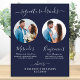 Bebidas Especiais ! Caligrafia simples e elegante, este letreiro de bebidas especiais apresenta dois coquetéis 'a Noiva' e 'o Noivo', personalizados com suas bebidas de escolha. Personalize este letreiro de casamento elegante com sua foto de noivado favorita ou fotos do casal, nomes e bebidas especiais! Você também pode personalizar as fotos das bebidas especiais com as fotos de seus animais de estimação favoritos para um casamento de animais! Personalize com fotos de cachorro ou gato. DIREITOS AUTORAIS © 2020 Judy Burrows, Black Dog Art - Todos os Direitos Reservados. Bebidas Especiais Pôster de Casamento Personalizado com Foto Azul Marinho