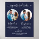 Bebidas Personalizadas ! Caligrafia simples e elegante, este letreiro de bebidas personalizadas apresenta dois coquetéis 'a Noiva' e 'o Noivo', personalizados com suas bebidas de escolha. Personalize este letreiro de casamento elegante com sua foto de noivado favorita ou fotos do casal, nomes e bebidas personalizadas! Você também pode personalizar as fotos das bebidas personalizadas com suas fotos de animais de estimação favoritos para um casamento de animais de estimação! Personalize com fotos de cães ou gatos. DIREITOS AUTORAIS © 2020 Judy Burrows, Black Dog Art - Todos os Direitos Reservados. Bebidas Personalizadas Foto Personalizada Cartaz de Casamento Azul Marinho