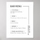 Bebidas de Casamento. Sinal de Menu de Bar Moderno Simples. Tipografia preta e branca menu de casamento minimalista