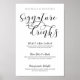 Sinal de bebidas especiais do casal minimalista, moderno e sofisticado. O design apresenta "Bebidas Especiais" em caligrafia preta moderna e personalizado com o nome do casal, e três bebidas especiais, incluindo o nome da bebida e descrição.