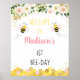 Welcome your party guests with an adorable personalized sign. Frame the sign and display it on a table near the entrance or mount the poster on foam and display it outside on an easel. The design features bees with watercolor florals and faux gold foil confetti with a honeycomb border.