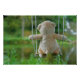 Teddy beertje dat op een schommel zit in de natuur. Een avontuurlijk beeld van een speelgoed beertje dat op avontuur is. Een droom die tot leven komt door speelgoed een activiteit te laten doen. Een zacht beeld dat schattig overkomt door een fluffie vacht van de beer. Geschikt voor in een kinderkamer met mooie dromen.