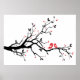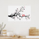 Pôster Beijando pássaro no galho da árvore com folhas ver