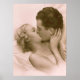 Fotografia vítrea de um beijo de casal. Fundo rosa.