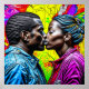 Cartão romântico personalizado. Bonito dreadlocks e colorida arte digital com beijos de casal afro-americanos.