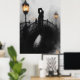 Poster Beijo da ponte romântica no carvão e lanterna bril