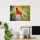 Poster com a foto de um lindo Cardeal vermelho sentado nos ramos de uma árvore.