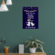 Um poster de boas-vindas festa de aniversário com 2 unicórnios dançantes bonitos com caudas brilhantes e coloridas, e homem. Um arco-íris colorido com nuvens em cada lado acima de suas cabeças. Outros elementos incluem uma pequena flor, um coração e algumas estrelas. Fundo roxo escuro. Pontos de confete coloridos e uma imagem de banner de bunting ao longo do topo.