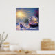 Uma poster de arte digital de fantasia linda criada usando o software de renderização AI apresenta uma cena mágica de inverno maravilhosa com um globo de neve maior que o mundo da vida. Texto personalizável "caminhando em uma terra maravilhosa do inverno"