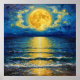 Poster Bela Lua Cheia Refletindo nas Ondas do Oceano